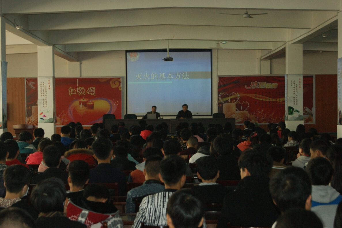 为进一步推进学校消防安全活动月相关工作的开展,加强学校消防安全管理工作,提升全校师生消防安全能力,切实保护全校师生人身及财产安全。11月17日下午,狮子山区消防中队马磊中队长应邀为我校师生开展了一次关于消防安全的主题讲座。各部实训室管理员,各班级安全员,各楼宿管人员、寝室长及食堂工作人员共计400余人参加了本次讲座。
