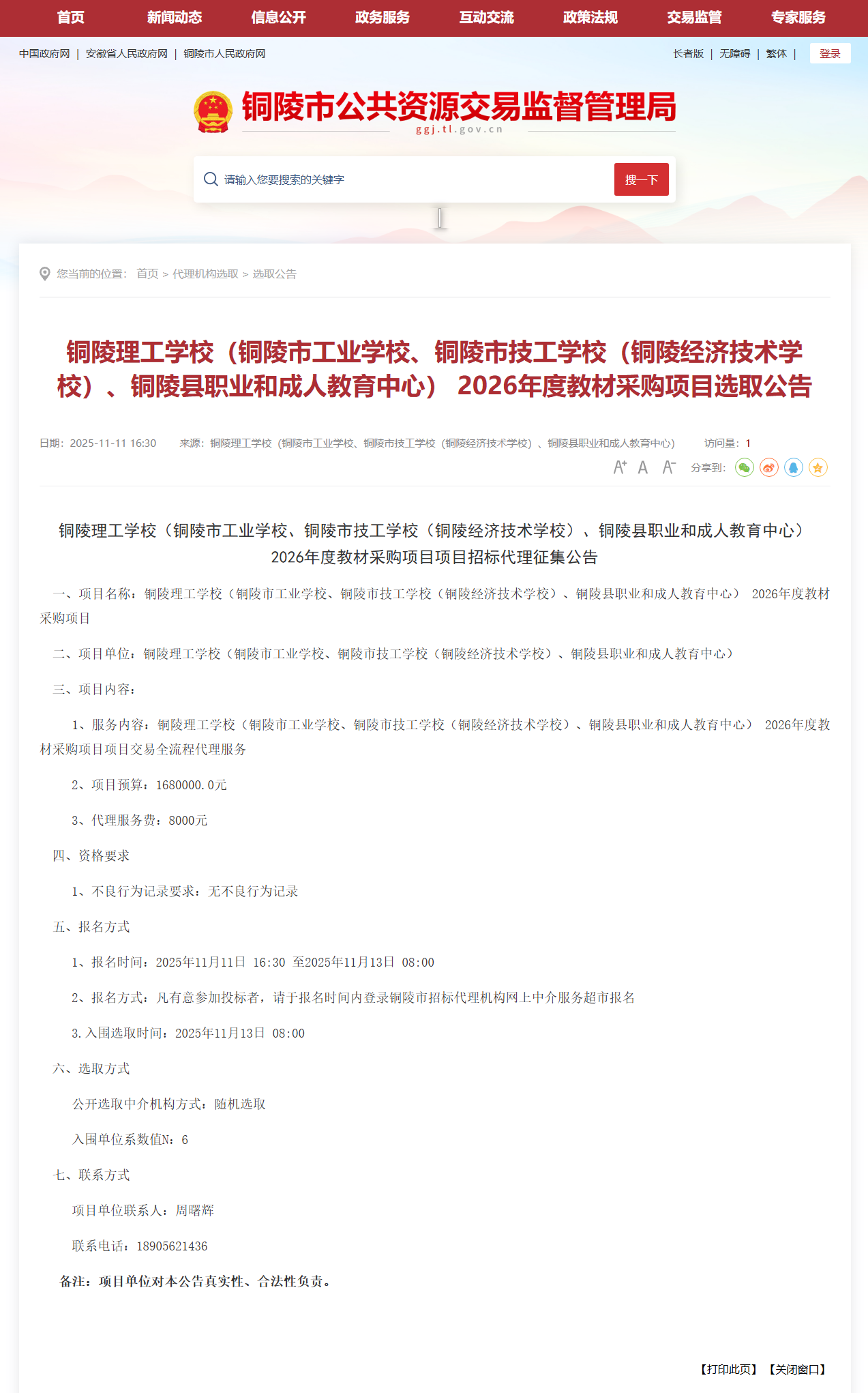上一条:铜陵理工学校 2026年校园绿化养护项目项目招标代理征集公告