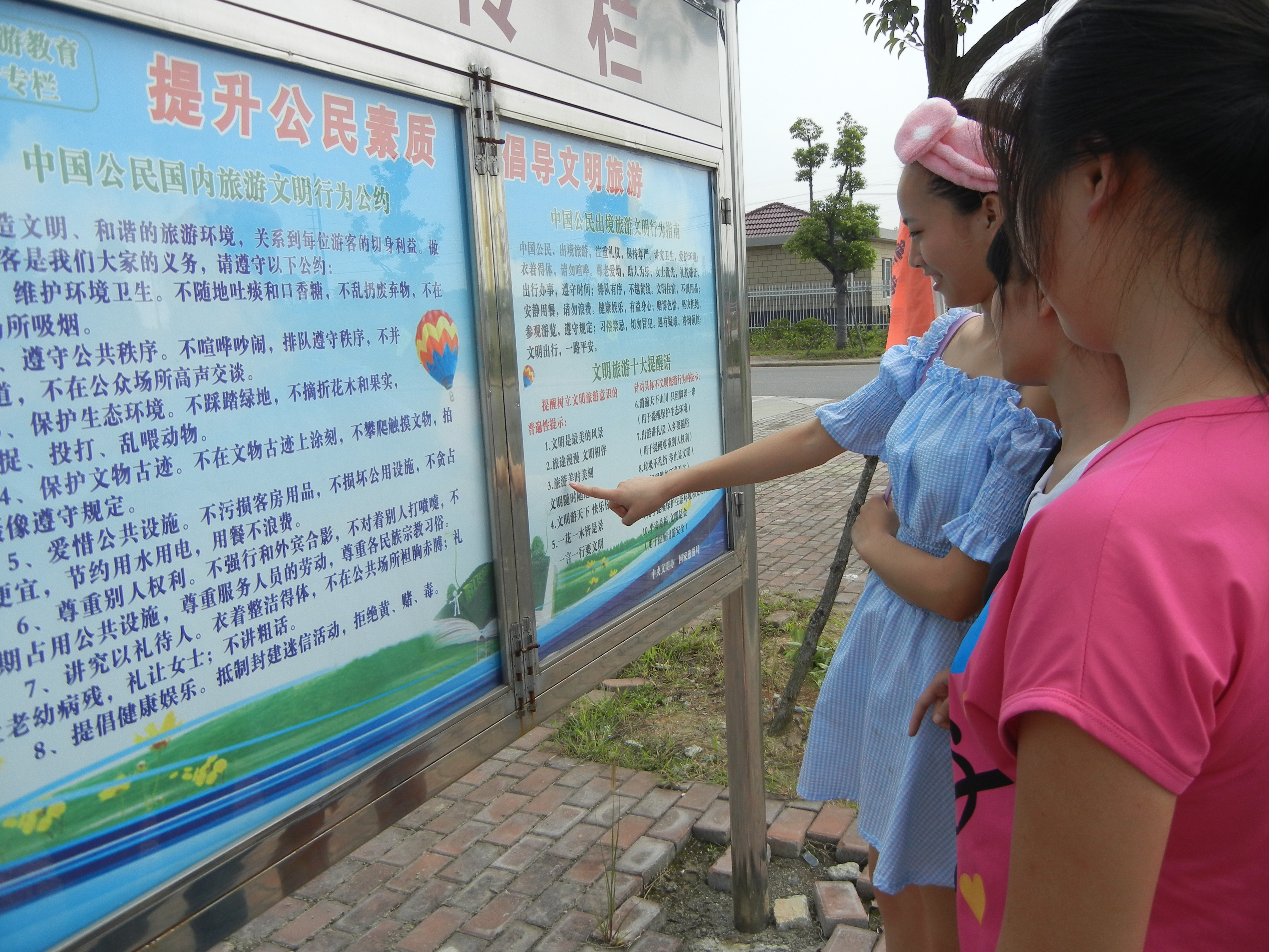 为进一步强化市民文明旅游意识,巩固我市全国优秀旅游城市创建成果,推动我市创建第四届全国文明城市工作,在全市营造文明和谐的旅游环境,我校积极贯彻落实市文明委制定的《铜陵市文明旅游行动实施方案》,在全校范围内开展了“文明出行,从我做起”宣传教育活动。