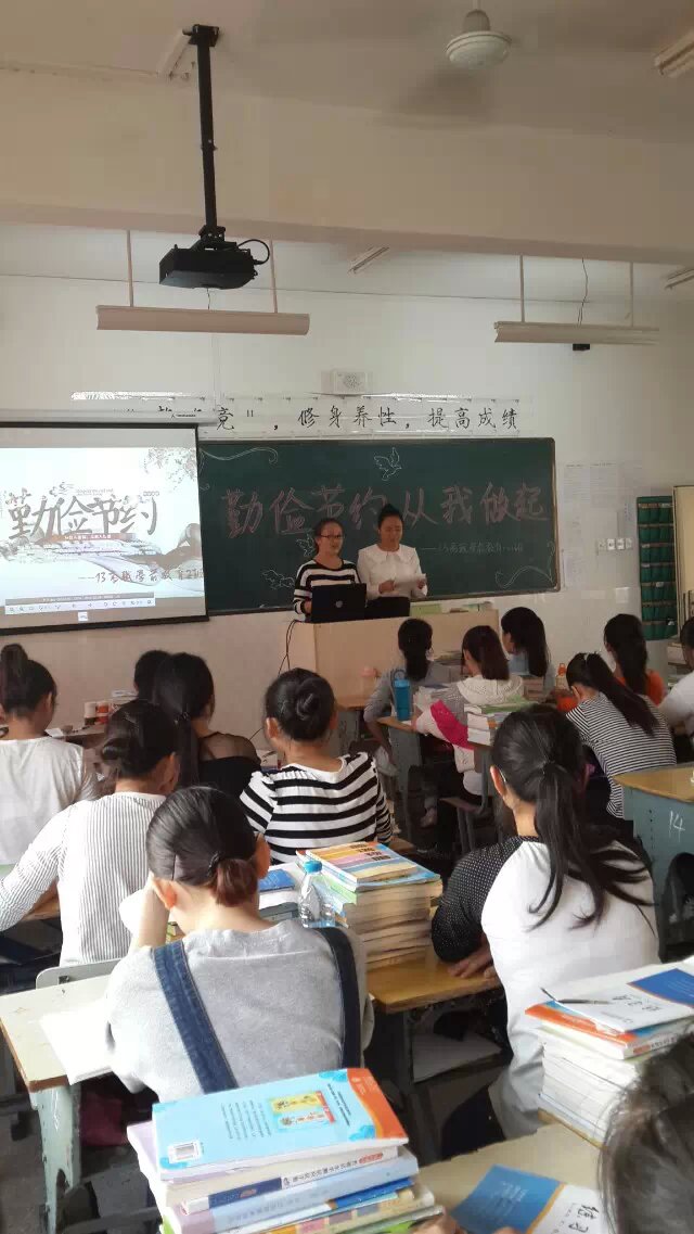 2014年10月20日下午班会课,经信部13级高职学前教育2班掌声阵阵,课堂气氛异常热烈,这里正在举行“三节三爱”主题班会《勤俭节约,从我做起》。