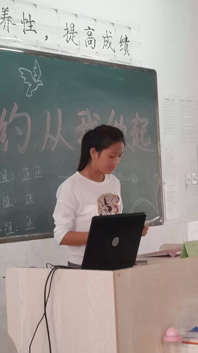 本次活动由团支部书记谢雪滢同学策划,唐佳蕊、鲍梦微同学主持。主题班会课上,吴红霞、石香、陈雪三位同学讲述了自己身边的勤俭节约的小故事,全班同学分三大组以抢答的形式,比赛生活中如何节俭。韦文静同学特地为本次活动制作了《生活中的浪费》和《废物的奇思妙想》视频,同学们还在班长伍秀莲的带领下宣誓“珍惜每一滴水,节约每一度电,用好每一张纸,不浪费一颗粮食,节约每一分零花钱,珍惜每一分钟,珍惜我们拥有的一切”。最后,班主任傅元芳老师做了总结讲话,她和同学们分享对“俭”的意义的理解,号召大家一起行动起来,从我做起,勤俭节约。