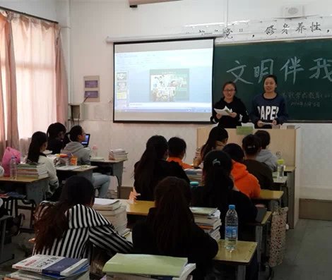 2014年11月3日下午班会课时间,13高职学前教育2班在本班教室举办“文明伴我行”主题班会活动。