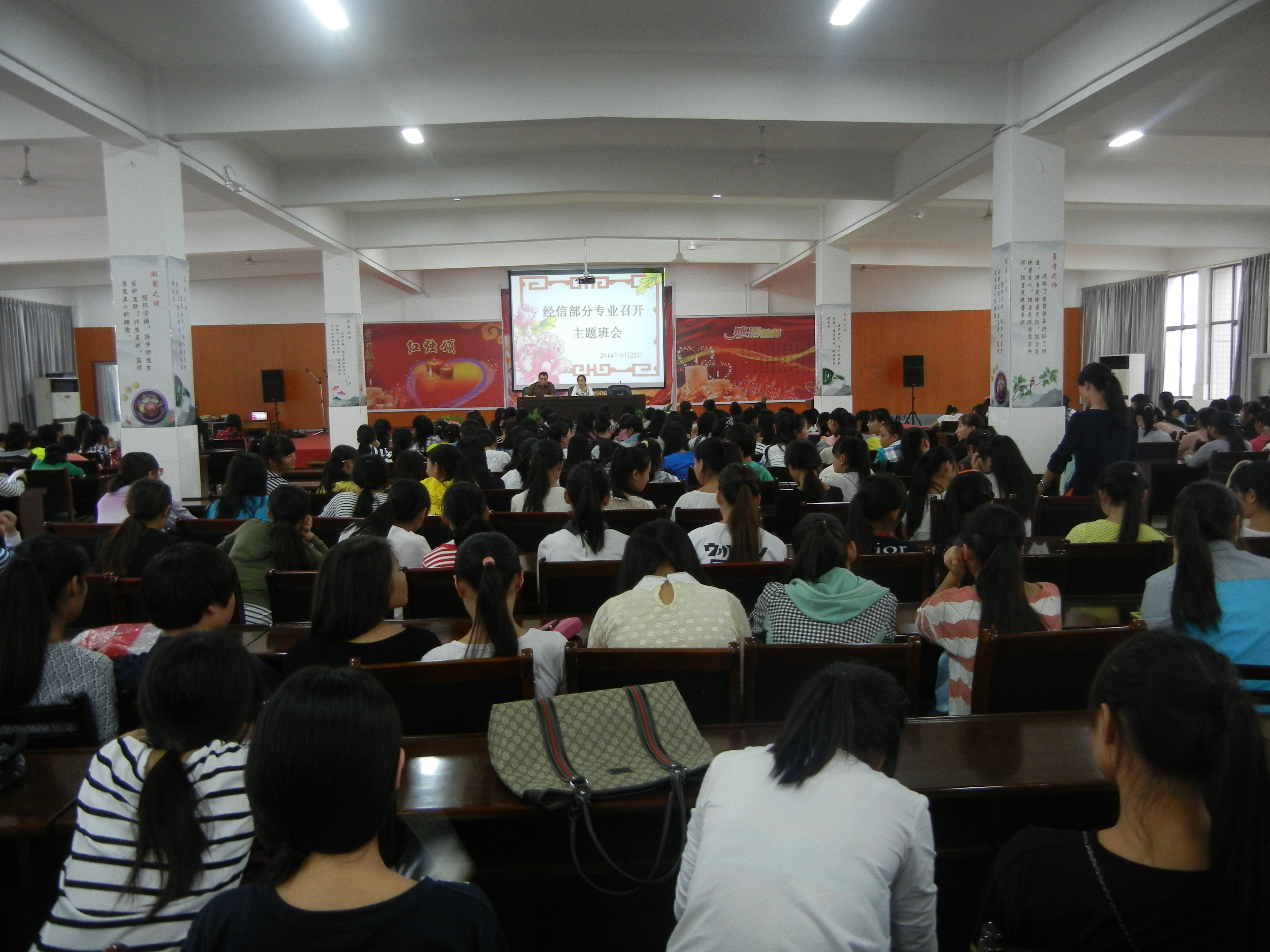 2014年9月22日下午,经信部在学校餐厅四楼会议室集中召开幼师专业班级主题班会。