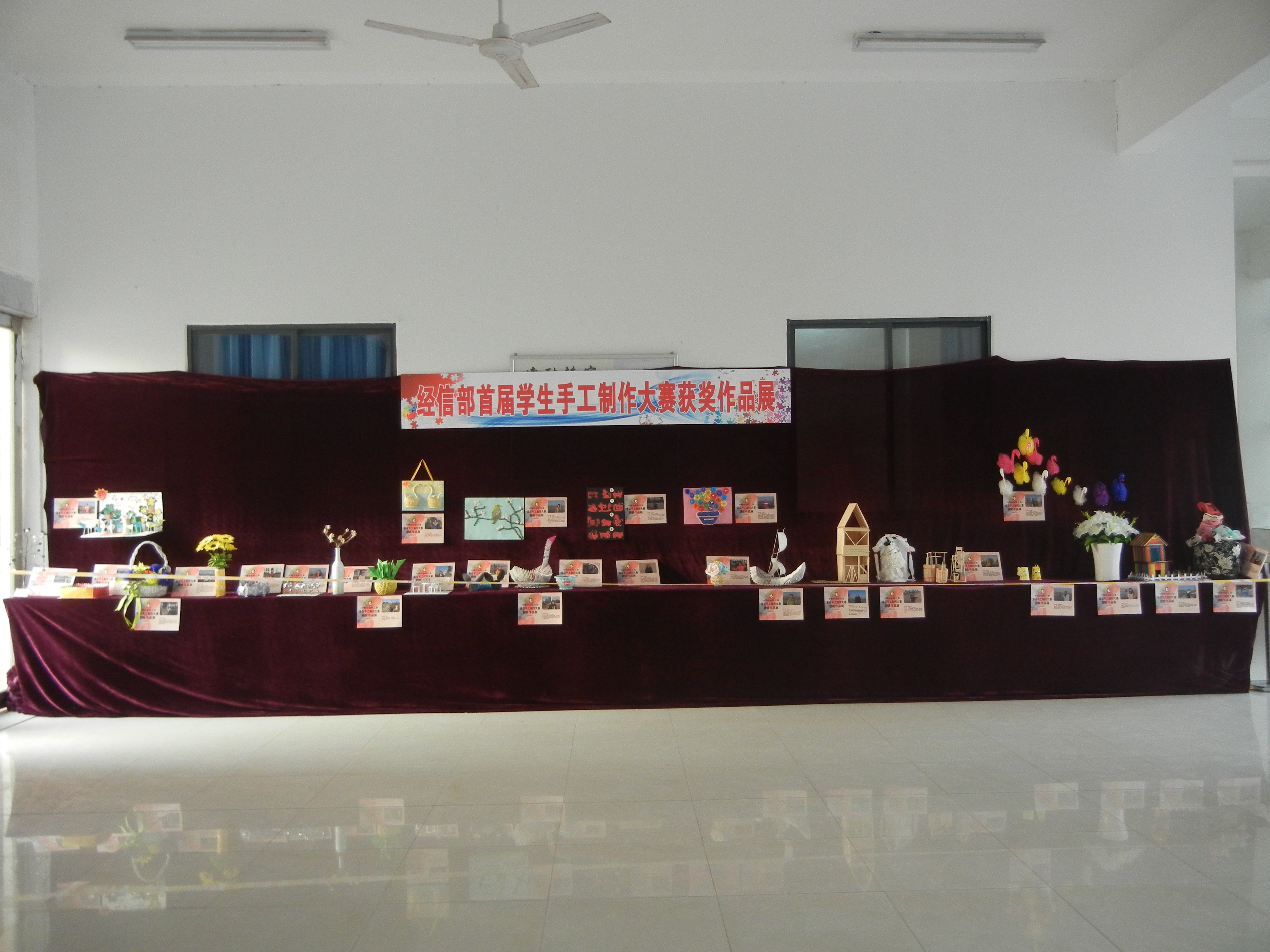 我部首届手工作品大赛圆满举行后,受到学校领导和同事的关注,大家渴望欣赏学生的创意作品。我部在经过精心准备后,于1月4日在商贸楼一楼大厅将作品展出。每件作品均附有制作学生照片和作品简介,受到师生好评。此次展览是对学生的极大鼓励,激发了大家的学习兴趣,同时鼓励大家变废为宝,为环保做贡献。