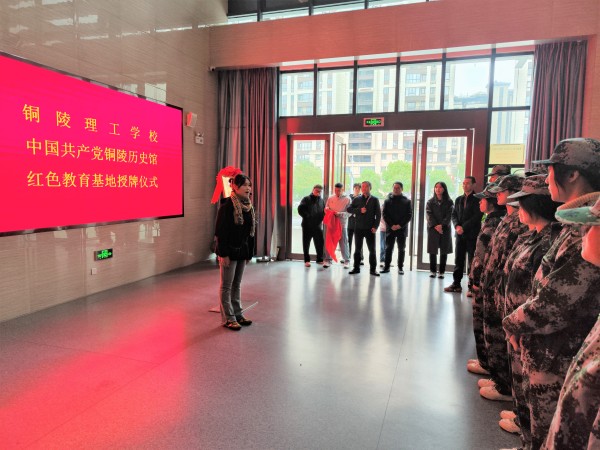座谈结束后,在中国共产党铜陵历史馆一楼序厅,举行红色教育基地揭牌仪式。随着红绸缓缓落下,标志着我校与市委党史和地方志研究室的校地合作正式落地,也为学校党史学习教育开辟了“沉浸式”红色教育新阵地。双方表示,将以揭牌为起点,持续深化合作,让红色资源成为校园育人的“活教材”。