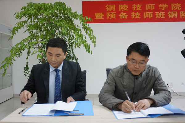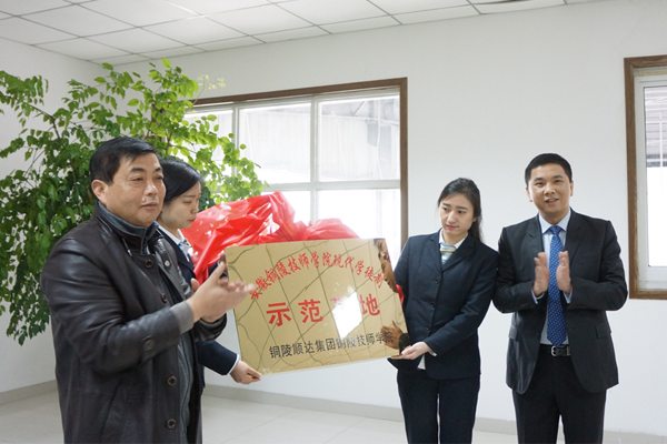 揭牌暨开班仪式上,顺达实业集团董事长吴海兵致辞,我校杨益民校长与吴海兵董事长签署了《铜陵市汽车维修技能实训基地共建合作协议》,随后我校刘曙光书记与吴海兵董事长共同为“铜陵技师学院现代学徒制示范基地”揭牌。