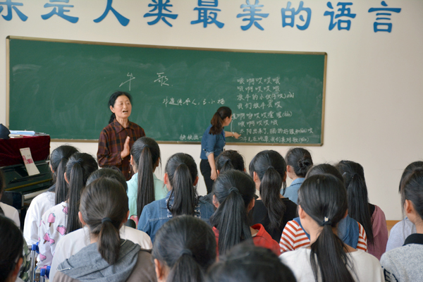 4月19日下午,我市首批安徽省级非物质文化遗产,《铜陵牛歌》的传承人——王小梅老师,应邀来到了我们铜陵中职中心,为我校学前教育专业的学生教唱《牛歌》。“啊唉哦,哦啊唉哦,哦啊唉哦;放牛的小伙子哎我们放牛去哟;哦咿哎嗨呵呵呵,哦啊唉哦,哦啊唉哦;红日当头照,晒得真暖和……”抑扬顿挫、原汁原味的歌声,一下午的教学活动,老师教得认真,学生们学得开心。通过教唱活动,学生们真正了解了“铜陵牛歌”这一种民间音乐艺术珍品,真切地品味了铜陵牛歌所承载的文化历史,并表示将在今后的教学活动中继承和传扬好非遗瑰宝。教唱过程中,王小梅老师拉着孩子们的手说,她现在已经老了,嗓子也没有以前好了,她希望能找到几位既有音乐基础的,又喜爱民歌的学生,把“铜陵牛歌”真正传承下去。