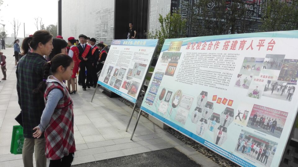 展板巡展,宣传办学成果。活动周期间,学校将宣传展板安排到各初中进行巡展,汽修部组织民航、城铁班学生前往铜陵市图书馆开展了职教宣传活动,同时设置“咨询服务台”,积极为广大学生及社会群众提供义务咨询、宣传职业教育的相关政策、就业前景和教育成果。