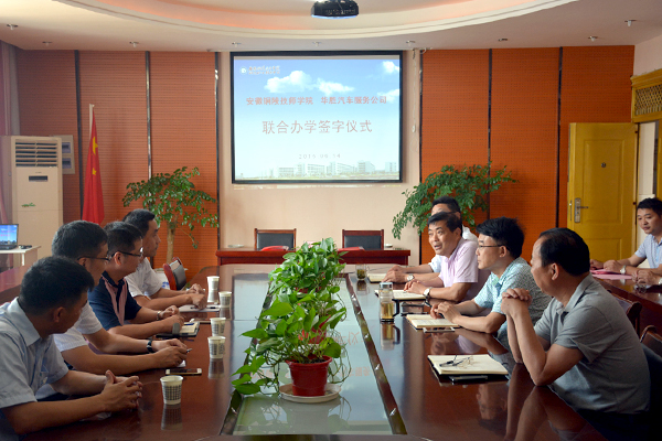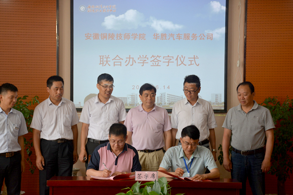 为发挥校企双方在技能人才培养上的优势,6月14日下午,我校与安徽华胜汽车服务有限公司联合办学签字仪式在学校商贸楼四楼会议室举行。安徽华胜汽车服务有限公司总经理马太然、铜陵华胜汽车服务有限公司经理舒展、华胜集团大盛商学院院长管如锁,校领导杨益民、刘曙光、贾健、俞民新及汽修部负责人出席了签字仪式。签字仪式由校党委书记刘曙光主持。