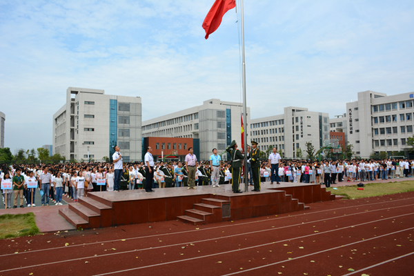 9月5日上午,伴着庄严的国歌,鲜艳的五星红旗冉冉升起,我校全体师生齐聚操场,隆重举行2016年秋季新学期的第一次升旗仪式。在升旗仪式上,15财经对口班朱新元同学作为学生代表发言。发言中,朱新元同学表达教师节来临之际对学校和老师的爱戴和感激之情。随后,升学部吴小勇老师作为教师代表发言。最后,杨益民校长作了总结讲话。讲话中,杨校长对过去一学年我校在快速发展中所取得的骄人成绩给予了肯定和褒奖,并通过自创的一首诗寄予全体学生要以良好的精神状态、饱满的学习热情、积极投身到新学期的学习中去,用崭新的面貌和成绩去创造自己的美好未来。