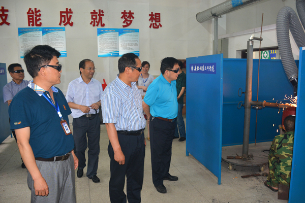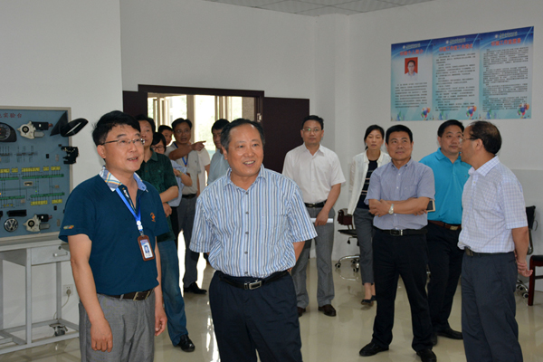 任副厅长一行先后实地查看了我校的焊工实训中心、汽修实训中心和生产型实习工厂,并参观了江小山和祁健两个名师工作室。在汽车电气工作室里,任副厅长与工作室负责人进行了亲切的交谈,仔细了解了新型汽车局域网络等情况。