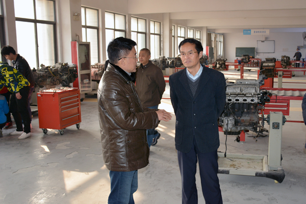 王祥生副主任一行在杨益民校长的陪同下,参观了我校汽修、机电和焊接中心等实训基地,听取了杨益民校长关于我校办学情况的汇报。汇报中,杨益民校长详细介绍了学校的发展历程、办学特色、取得成绩以及存在的问题,对铜陵市高级技能人才紧缺的现状和技师学院着力打造的高、特、土、品学校名片做了重点阐述。