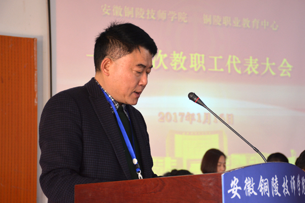 大会号召,全校广大教职工立即行动起来,以主人翁的责任感、使命感,负重前行、争先进位,要抢抓机遇、大胆改革、谋求发展,求真务实,开拓创新,打造职业教育“铜陵样本”、实现学校新的历史跨越而努力奋斗!