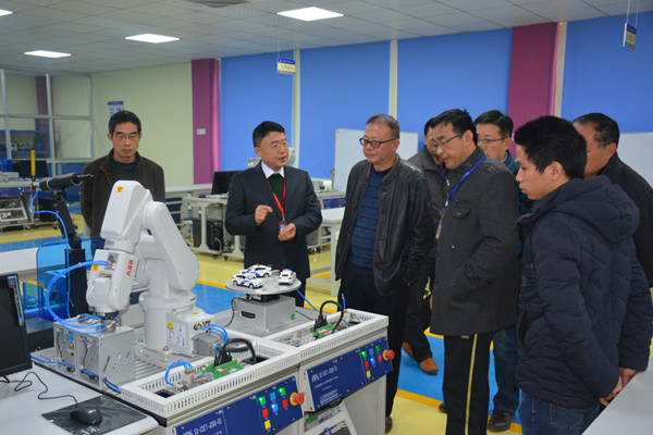 李局长一行深入校园实地查看了校园环境,重点检查了工业机器人等实训基地。随后,在图文信息中心七楼会议室听取了杨益民校长关于学校开学工作情况及2017年重点工作的汇报。杨校长在汇报中表示,我校按照市教育局的统一部署,如期开学,有条不紊。2017年,我校坚持立德树人、坚持内涵发展,加强师资队伍建设,打造特色系部,实现校园文化高端定位,积极谋求中德合作办学,在高技能人才培养模式上寻求突破,为铜陵区域经济发展做出新的贡献。