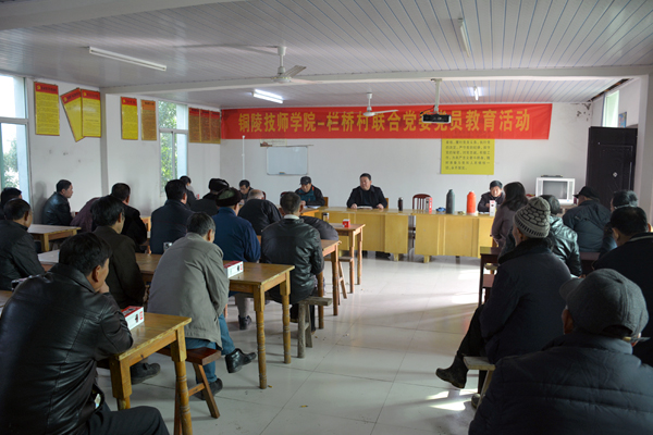 根据市委《关于充分发挥城乡一体化党建优势,促进区域协调发展的意见》文件精神以及扶贫工作要求,12月22日,中共铜陵市中等职业技术教育中心·会宫镇栏桥村联合党委在栏桥村开展党员教育活动。党员教育活动在会宫镇栏桥村文化活动中心开展,联合党委成员、栏桥村党员和我校部分党员共60余人参加了党员教育活动。