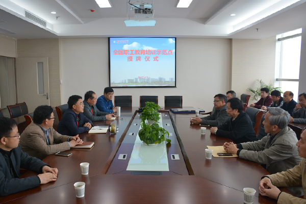4月7日上午,全国职工教育培训示范点授牌仪式在我校图文信息中心七楼会议室进行。市总工会党组书记、副主席孙彬一行在市教育局党委委员、工会主席郑国的陪同下亲临我校授牌。我校杨益民校长、党委副书记高传来及相关科室人员参加了授牌仪式。