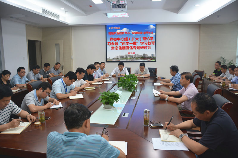 在习近平总书记视察安徽一周年之际,为深入学习贯彻习近平总书记视察安徽重要讲话精神,5月23日下午,我校在图文信息中心七楼会议室召开了党委中心组(扩大)学习会暨“两学一做” 学习教育常态化制度化专题研讨会。学校党委班子成员、全体中层以上干部参会。学习研讨会由党委书记刘曙光主持。